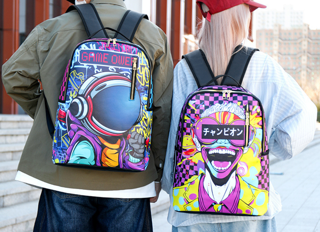 Fashion men's and women's PU graffiti large capacity backpack student backpack travel bag mochila mochilas de hombre school bag